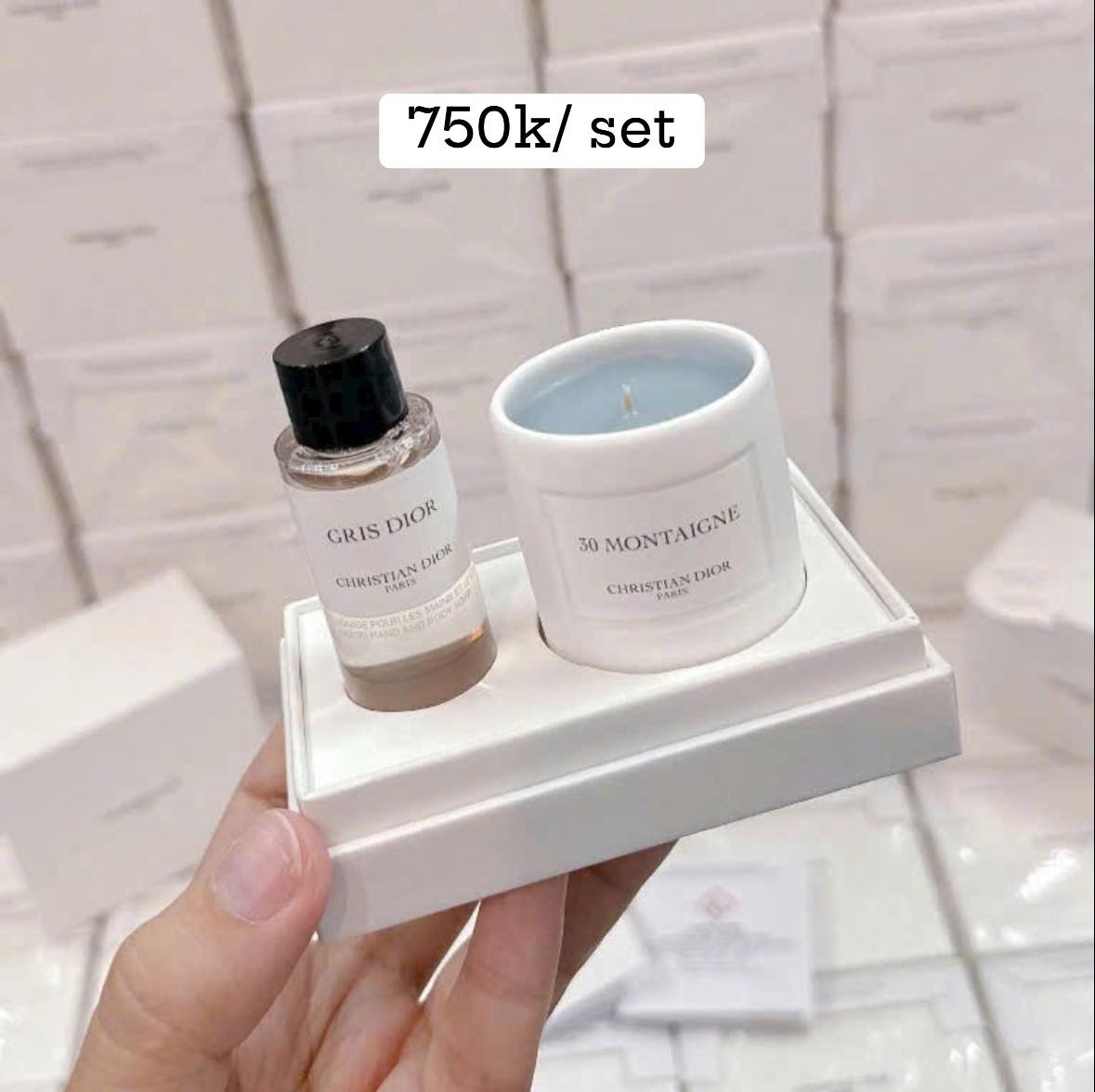 Em về được vài gift set dòng cao cấp của Dior gồm 1 hũ nến thơm 30 Montaigne 35gr + 1 sữa tắm hương nước hoa Gris Di or 2Oml siêu sangggg, làm quà tặng lễ rất hợp ạ ^^