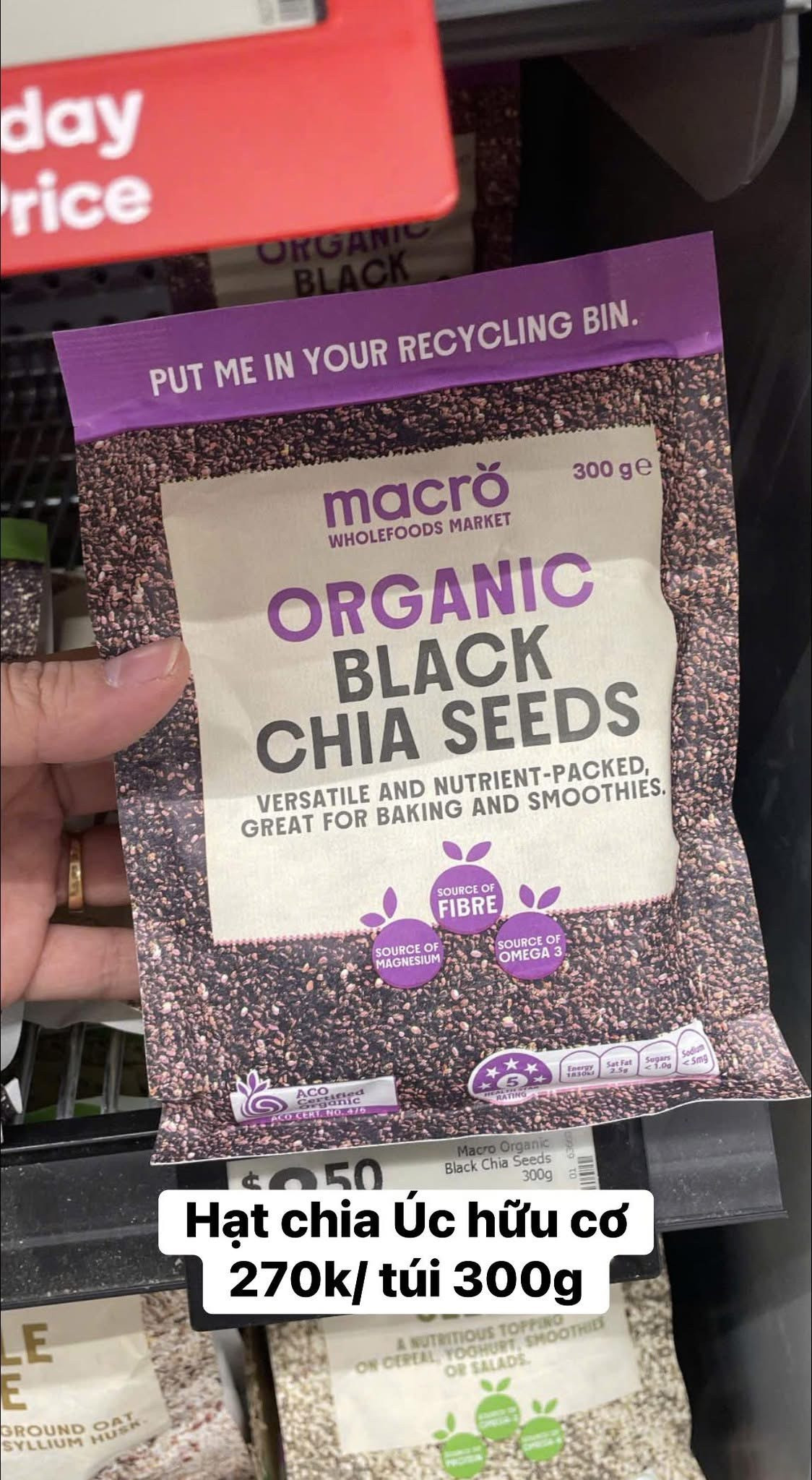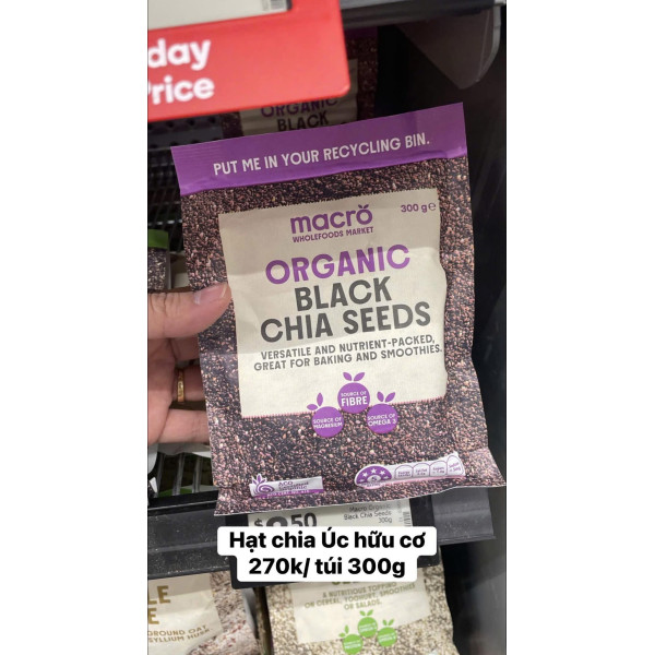 Hạt Chia Úc Black Bag Chia được chứng nhận Organic. Nghĩa là trong suốt quá trình từ khi gieo trồng cho đến khi thu hoạch, chúng hoàn toàn phát triển tự nhiện và không sử dụng phân bón hóa học. Hạt Chia Úc Black Bag Chia được trồng tại Melbourne có năng xuất cao nên có hàm lượng Omega 3 cao đáng kể
